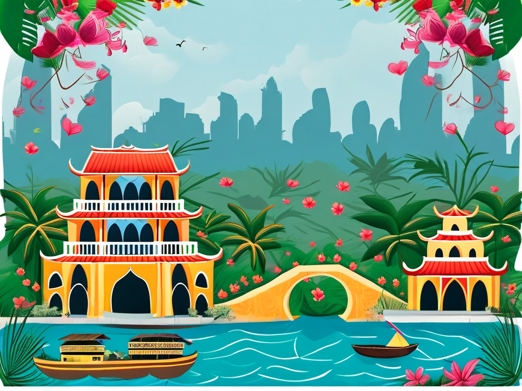 1. 配色方案:主色调使用蓝色和绿色(象征专业和越南特色)